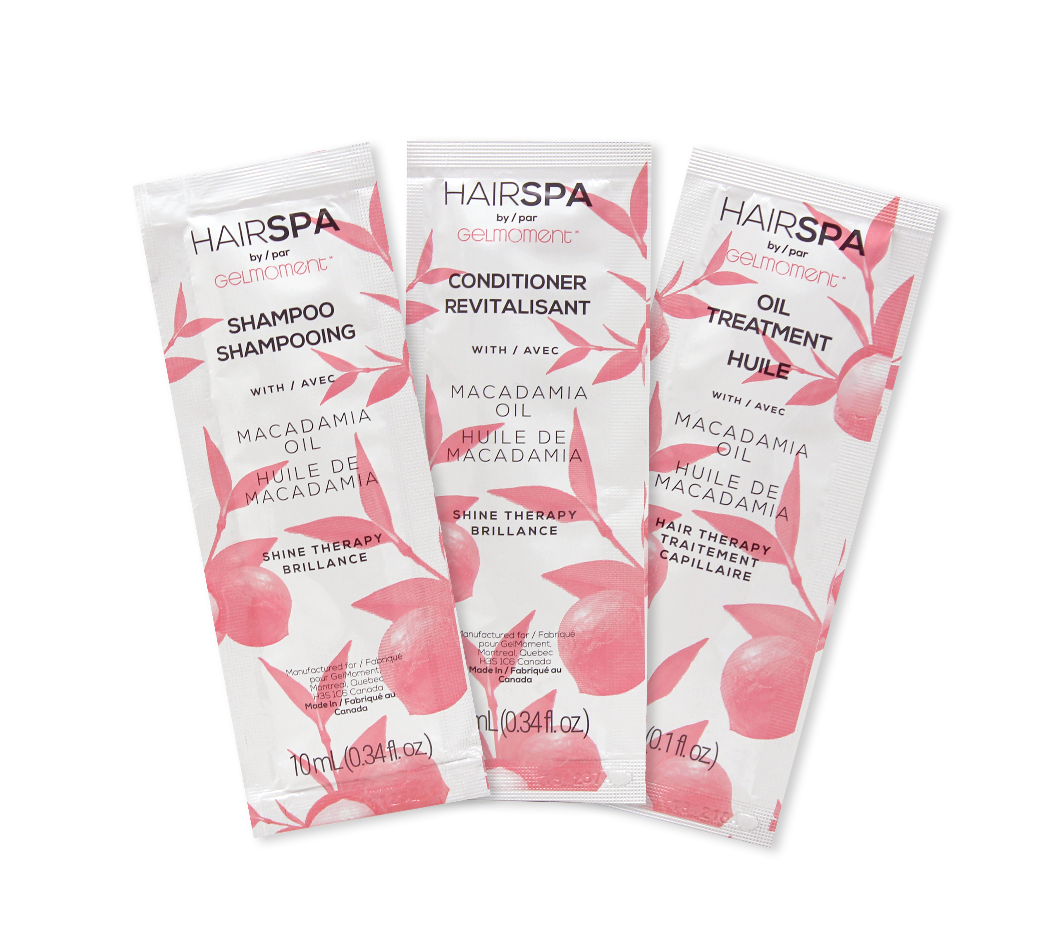 Pack of 25 samples includes: 10 shampoo, 10 conditioner, 5 hair oil